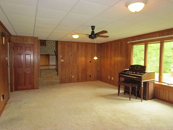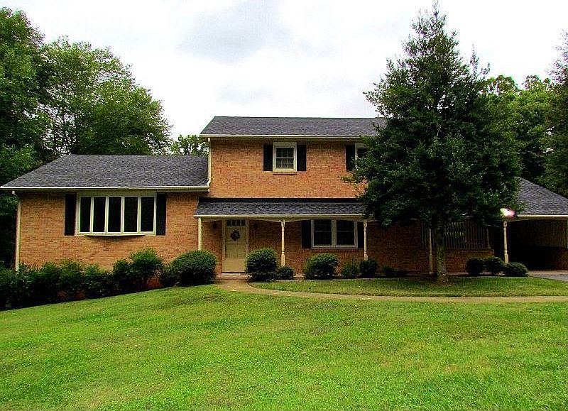 Perfect front and backyard that is level and borders the creek. Other outdoor amenities include a 575 sq ft. one car garage and workshop with electric and water. An attached 2-car carport which also makes a great patio area. Exterior is brick with a new roof (2004) and replacement windows. Main level has large family room with stove fireplace, raised hearth, and a circular bay window area. Main level bedroom with full tile bath. Living and dining room are carpet over hardwood. Foyer has slate entry. Kitchen has lots of cabinets and sunny window overlooking backyard. There are 3 additional bedrooms and 2 full baths on the upper level. There are hardwoods under carpet and ceiling fans in all bedrooms. This home was custom built for the present owners and has many features that make this all brick home with detached garage plus 2-car carport a great family home for $185,000. Conveniently located to 460 and 221 as well as shopping, dining, and schools.