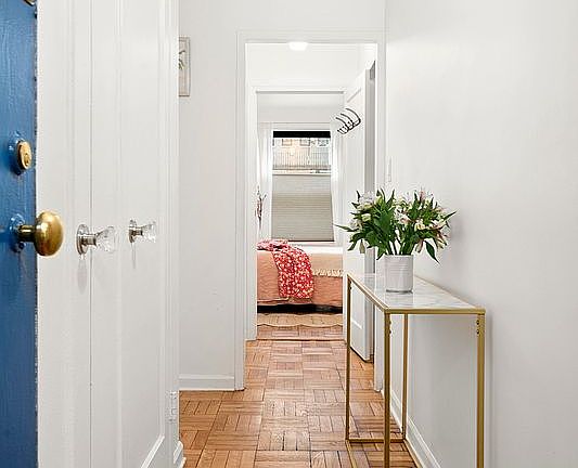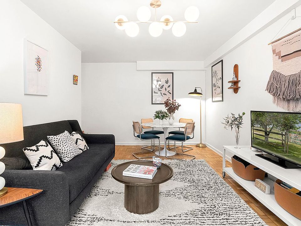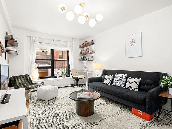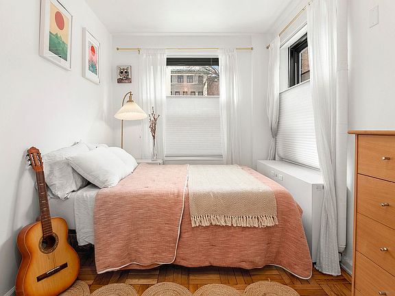 Happy surprises abound in this extra-spacious studio! Its layout, updates and natural light are all delightful attributes, as is the separate sleeping nook that makes it feel like a one bedroom. The apartment has been improved over the time to reach a level of both functionality and aesthetics. The south-facing living room has floor-to-ceiling windows and is spacious enough to fit a large couch, a media console, a dining table for four (or six) and a desk. A window bench creates extra seating for entertaining or for a cozy solitary read. The bedroom will easily fit a queen-size bed, so no need to compromise on comfort -- or privacy. With south and west exposures, it gets plenty of sunlight. The recently updated kitchen has a grey and white palette and confetti-tiled backsplash. Great storage, counter space and high-quality appliances make it an ideal place to cook delicious meals. Recently renovated, the bathroom is in mint condition, with a soaking tub, oversized white subway tiles and marble floor. Four closets make storage a dream. The Clinton Hill Cooperatives, North Campus, is comprised of six buildings, connected by landscaped gardens and benches to enjoy sunshine and neighbors. And, pet-friendly, it has full-time security, basement laundry and storage and parking (both currently on waitlist). Located conveniently near Myrtle and DeKalb Avenues, the options for dining and shopping are many. The G train is just three blocks away, and busses on both Myrtle and DeKalb are a quick ride to downtown Brooklyn.