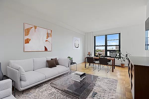 NEW! FIRST SHOWINGS BY OPEN HOUSE - SUNDAY, AUGUST 15TH FROM 12-2PM. This high floor, renovated home is bright and quiet and has extensive views of Brooklyn and beyond - Plus, it's easily convertible to a TWO-BEDROOM! The designer kitchen has a window, tons of storage, stainless steel appliances (including a dishwasher), and beautiful tile flooring. The living room is huge and has an over-sized picture window and a separate alcove, which can be used as a second bedroom and is configured with a custom Murphy bed. Down the hall is the renovated bathroom and a bedroom large enough to accommodate a king-sized bedroom set, while still having enough room for a home office or sitting area. The Clinton Hill Apartments remain the best value in this highly desirable location on the border of Fort Greene and Clinton Hill, Brooklyn. There are renovated laundry facilities, elevators, an on-site maintenance staff, 24-hour Security, bike storage, package room and a common courtyard. New, more efficient and quiet windows were installed in all apartments in 2019/2020. Also, Radiator Labs Cozys were installed on all radiators. The Radiator Lab Cozy is a smart, internet-connected, thermostatic cover for radiators. The G and C trains are the closest, but nearly every train in the system can be found nearby. Neighborhood amenities include some of the best restaurants in the borough along Dekalb Avenue and Myrtle Ave and new attractions in the Navy Yard, including a ferry stop, Russ and Daughters, and Wegmans grocery store. Fort Greene Park, two farmers markets, BAM, Pratt Institute and sculpture garden, City Point, Barclays Center, plus the newest Whole Foods and Apple store are within minutes. Pets are Allowed! Pied-a-terre OK Sublets permitted after two years of ownership Wired for Fios