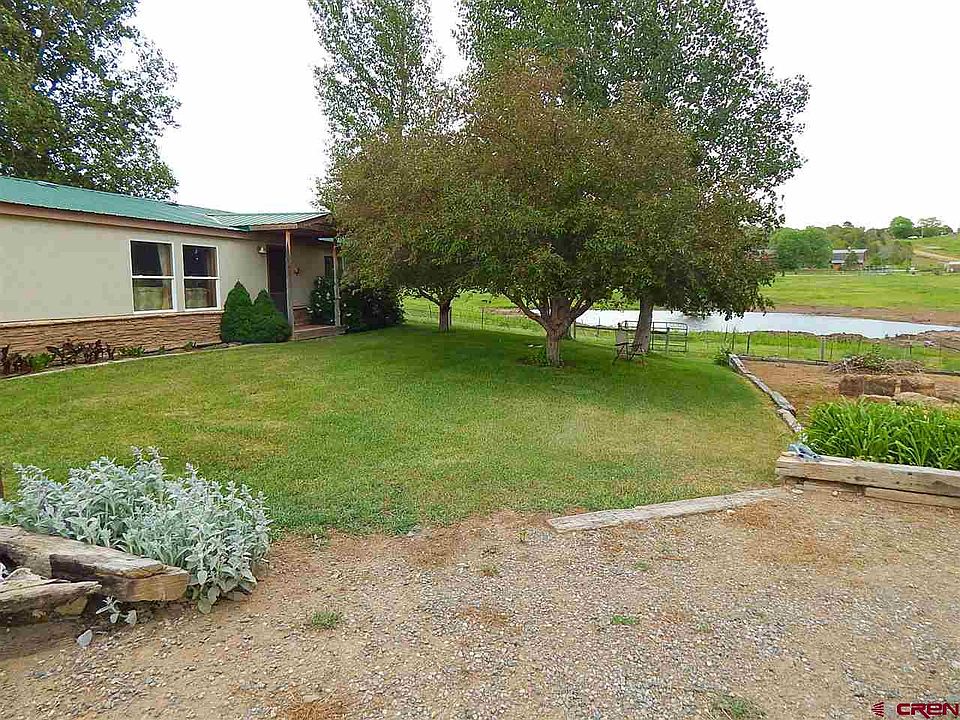 Horse property with additional rental income potential. No covenants! Beautiful 9.6 acre parcel just 3.5 miles south of Bayfield. There are 2(+) homes on this property. The main home is a purged 1568 square foot 1997 mobile home. This home is in good condition and is set back on the property to allow for privacy and fantastic views of the La Plata Mountains. There is also a 980 sq.ft. mobile (1982) in the front of the property that could be used for extended family or as a great rental. The large open barn, as well the as multiple other outbuildings, are all in good condition. Another small mobile on the property is not in great shape, but it could be renovated or used for additional storage. It might be possible to remove this small mobile and create an RV parking spot instead. All 3 septic tanks on property are permitted. The land is irrigated by King Ditch (PRID) water, and all the existing irrigation equipment (pump and gated pipe) transfer with the sale. Dry Creek crosses the west boundary of the property and flows year-round. A cistern is fed by a good well that was installed by DAK drilling in 2007. The property also has a nice seasonal pond which is fed by the irrigation water, and the neighbor has a large pond very near the property line which is a beautiful place to watch the ducks, birds and other wildlife. There is a nice greenhouse on the property. All of the pastures are cross fenced and very lush. This would make for a perfect horse property, small ranch, investment property, or family compound. Come see it today!