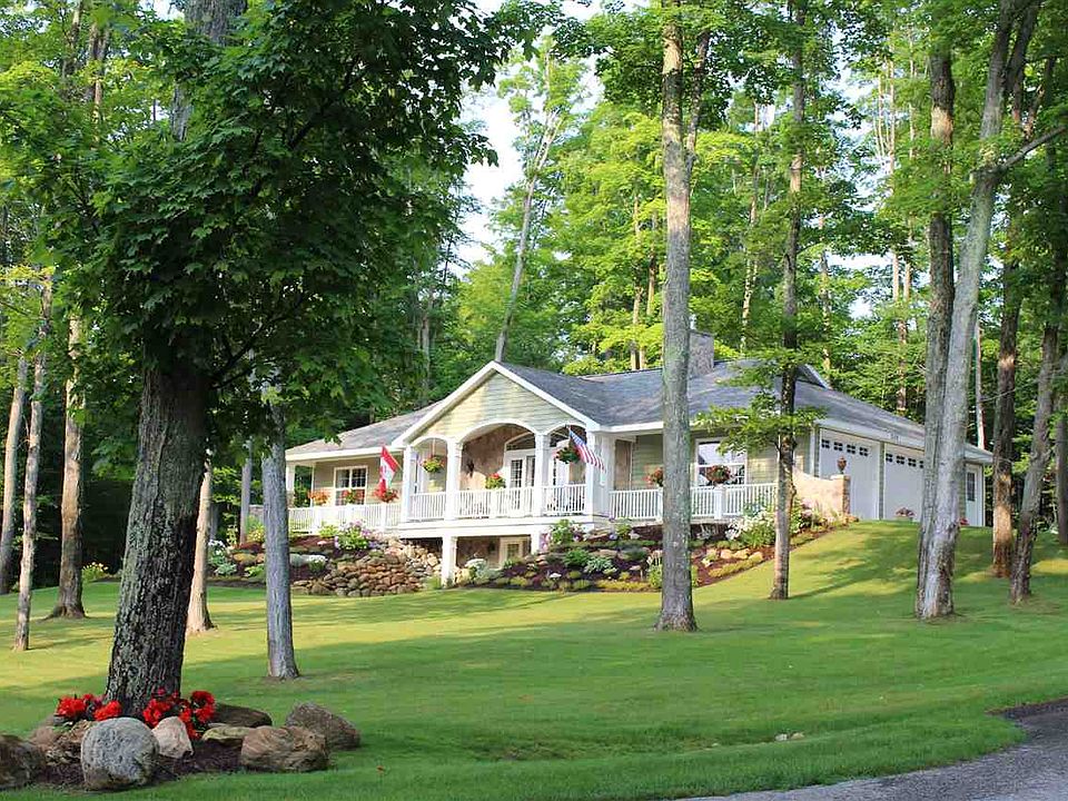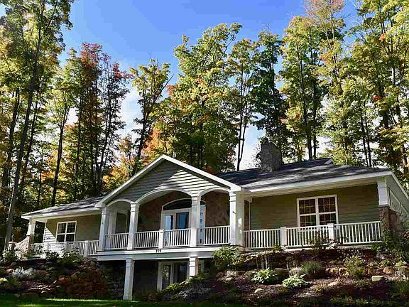 Enjoy 700 feet of shared frontage of Lake Charlevoix`s South Arm in this gorgeous ranch style home offering 3 bedrooms 3 full baths, large laundry\mud room, a whole house generator system, never get caught again without power, an underground sprinkler system. Low annual maintenance fee. Paved roads, clubhouse, and snow plowing. A large Master bedroom, with extra room to escape. The Master bathroom is equipped with double sinks, a large Jacuzzi tub and a separate shower. In the downstairs there is a nice den or that area could be used as an office that measures 13` X 15` and there is a full bath right outside the door. Large open family room for a variety of uses. It is prepped for a second kitchen and another gas fireplace. The large Utility room is finished too..