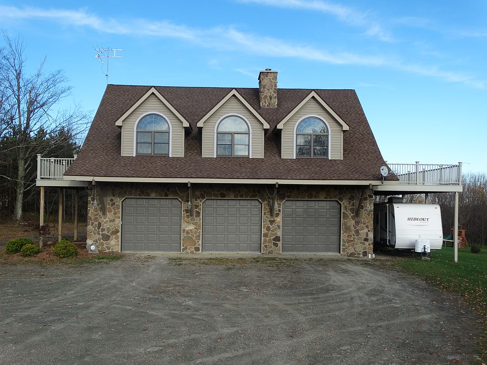 Over 2500 square foot home with 3 bedrooms and 3 baths. Located on 29.3 acres that is mostly wooded. 20 Acres in producing well. Furnace Rated wood burning stone fireplace, with an Outdoor wood boiler large enough to heat an additional workshop if desired. Backup oil boiler inside. Radiant in floor heat and central air, 4 Bay Heated Garage. Open floor plan with cathedral ceilings and log railing in loft with 30+ mile views! Large kitchen with stainless steel appliances. 2 maintenance free Azek decks to watch deer and turkey. Relaxing, private, with hunting and other outdoor activities right out your back door. Selling with 50% Oil and Gas rights for $375,000