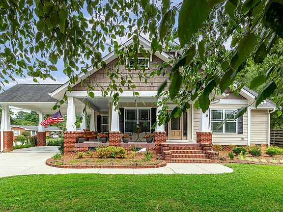 Well maintained custom built home located within walking distance to downtown Clayton and easy access to highway commuting. Quiet street location with cul-de-sac at end. Home amenities include: custom cabinets in kitchen and baths with granite countertops, under-cabinet lighting and ceramic backsplash in kitchen, custom wainscoting in living and dining rooms, crown molding throughout, large windows allow for lots of natural light throughout house, tropical wood floors (Purple Heart) and accent lighting in sunroom, heat lights in bathrooms, custom closet systems in pantry and main bedroom, front and side porches have composite deck flooring, masonry steps on front and side porches, custom built craftsman columns on front porch and carport, large, attached storage room in back with concrete floor, fully landscaped yard.