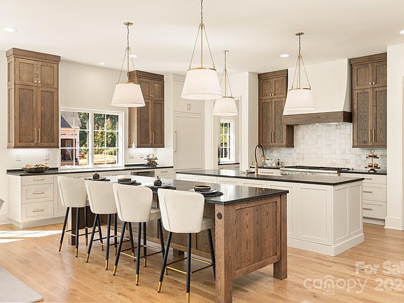 Option to paint exterior brick white as shown in rendering | A truly unique gem in the coveted Cardinal Crest community in Weddington, NC, this semi-custom estate home is situated on an approximately 1-acre private, wooded lot. This luxury residence boasts a gourmet kitchen equipped with high-end appliances, custom cabinetry, quartz countertops, and double islands, seamlessly flowing to the spacious family room with a gas fireplace. The main-level primary suite offers a spa-like bathroom and expansive walk-in closet. Additional living spaces include a versatile bonus room, a theater/media room with concession area, and a cozy loft. Outdoor living is a delight with a saltwater pool, spa, screened porch, and covered terrace. The lower level features a second family room, theater room, guest suite, and ample storage. With easy access to I-485, shopping, and dining, this home provides the perfect blend of luxury, privacy, and convenience in Weddington.