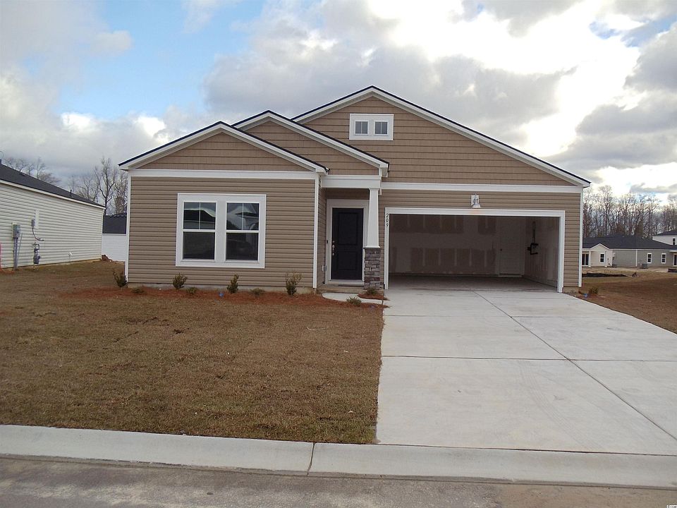 Under Construction for Dec 2021 completion. This Dover floor plan features 3 bedrooms, 2 bathrooms with a spacious Owner's Suite,walk in closet and secondary bedrooms. This open concept home hallmarks 36" stylish white cabinets, 3 x 6 subway tile back splash,granite in the kitchen, Shaw laminate flooring in the main living areas, GE stainless steel appliances including a gas range. The Owner's suite bathroom highlights double bowl sinks, elevated vanity, 5' walk in shower. This home also features LED recess lighting, Moenfaucets and towel hooks, elongated toilets with soft close lids, and a Rinnai tankless water heater. Pictures are of a previously built home that may have additional upgrades and are for illustrative purposes only. Longview has a low HOA fee but still offers a beautifulcommunity pool! we are about 15-20 minutes from the beaches of North Myrtle Beach yet located in a quiet setting with large homesites.