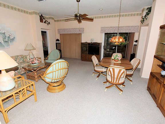 Jan-March 2021 - Monthly rental -- This lovely, furnished 2 bedroom, 2 bath, with Den, Designer home sits on a private lot in the village of Mira Mesa and is walking distance to Spanish Springs, Chula Vista Rec. Ctr. and several neighborhood pools. Home is beautifully decorated with eat-in Kitchen, 32 inch TV in the Living Room and 42 inch TV in the Den. Two car garage and Electric Golf Cart included. Come enjoy The Villages 55+ Community -- All inclusive of utilities -- Bring your personal items!