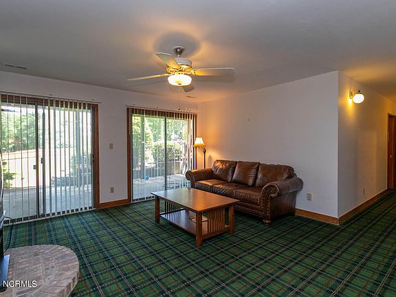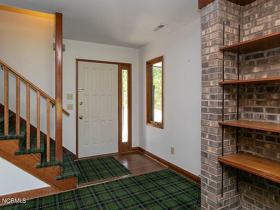This golf front home is situated on a nice corner lot overlooking a pond and the 8th green of the Seven Lakes golf course. The upper level is open and bright with three sets of sliding glass doors off the living room that open to a deck across the back, perfect for relaxing and taking in an amazing view of the golf course and water. The living room has a brick fireplace and open to a dining area and kitchen. The primary bedroom on the upper level has a soaring vaulted ceiling with clearstory windows, large walk-in closet and bathroom with separate vanities. The main level has a family room with sliding glass doors opening to the back, a second primary bedroom with private bathroom, guest bathroom, a bedroom and flex space. It also has an attached double carport. With some TLC this home has wonderful potential.