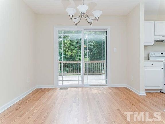 Hard to find ranch at this price & most all is brand new! Brand new vinyl siding, deck, neutral paints, kitchen, flrs, hvac system, roof! New kitchen w/convenient brkfst bartop, perfect for entertaining, plus new appliances. Family rm w/ ceiling fan/light & wood burning fp. All neutral paints & carpets, ready for move in. Brushed nickel fixtures, hrdwd-like flrs. Quiet culdesac w/wooded, fenced backyard. Extra parking pad, storage sheds! Superb locale, close to highway for easy access th-out the Triangle.