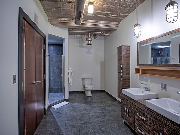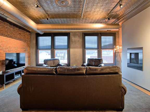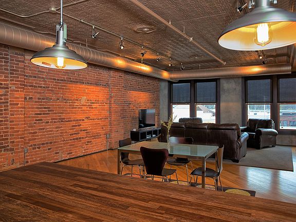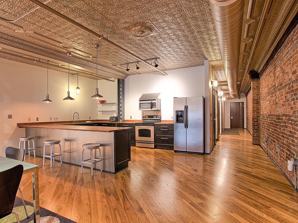 BRIX is a completely renovated three-story furniture store built in 1866. The original tin ceilings remain intact throughout the lofts and first-floor commercial space, along with exposed brick walls on the interior. Square footages vary between 1450sf and 1900sf. All seven one-bedroom, open-floorplan units have ash hardwood floors, Italian tile bathrooms with double bowl vanities and European fixtures, WoodMode kitchens with iroko hardwood countertops, stainless appliances, gas fireplaces, large flat-screen televisions and in-unit washers and dryers. BRIX is an elevator-served, "green" building utilizing energy efficiency in lighting controls and ground-sourced heating and cooling from a geothermal system.