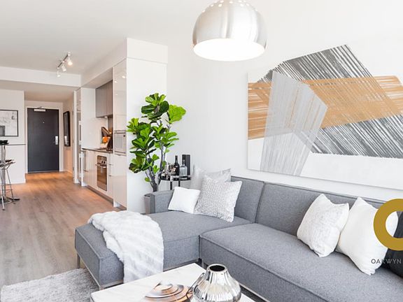 This 2 Bedroom + Den & 1 Bathroom unit is perfectly situated in Mount Pleasant, and centrally located on Main Street. Walking distance to the city's bests restaurants, pubs and Science World! This unit features an integrated fridge and gas stove, and plenty of cabinet storage space. Enjoy an impressive city and mountain views from the living room, master bedroom and functional balcony. Both bedrooms are outfitted with built-in closet organizers and accommodate queen sized beds. The spa-like bathroom and the laundry room is a huge bonus. Building amenities include a fitness centre and rooftop deck. Only a one minute walk to buses; easy access to transit with connections to the Skytrain. Utilities not included, and 1 parking stall available