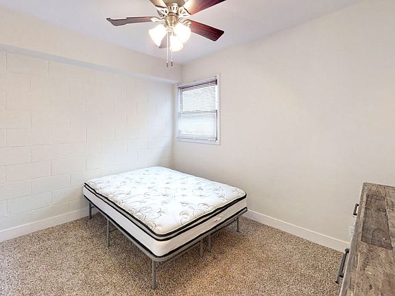 Full-size bedSectional couchIn-unit laundryElectric stoveStainless steel appliancesCeiling fansCentral ac