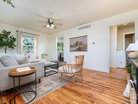 Southeast Boise living, with North End charm. This beautiful cottage style home features ample amounts of natural light, and refinished hardwood flooring in main living areas. Floor plan maximizes the space and the home lives larger than the square footage. Enjoy entertaining and relaxing in your private backyard surrounded by mature trees and landscaping. Large lot with space to add on or build an ADU with city approval. Within 10 minutes to downtown, 5 mins to Boise State University, and easy freeway access. Close proximity to shopping, restaurants, schools, or venture out to the nearby Boise foothills, river and trails for the outdoor enthusiast. Washer/dryer included, refrigerator negotiable. Move-in ready, do not miss out on this one!