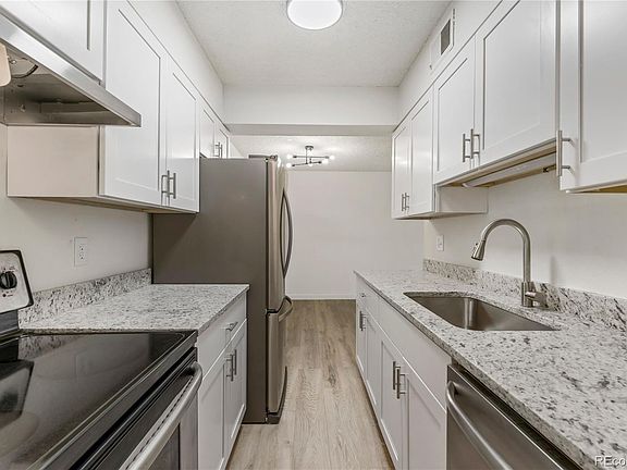 SELLER IS OFFERING A $7,500 CREDIT!! Exceptional garden-level corner unit perfectly situated to capture serene green views! Located in a prime spot with easy access to the Highline Canal Trail network, this fully updated gem showcases contemporary elegance and convenience. You'll be greeted by a stylish interior that has been meticulously renovated. The kitchen is adorned with beautiful granite counters, upgraded stainless steel appliances and ample storage space. Modern laminate flooring flows seamlessly throughout, creating a warm and inviting atmosphere. Entertain and relax effortlessly in the spacious dining room that opens gracefully to the living room. An abundance of natural light creates an airy ambiance. This residence features two generously sized bedrooms including the primary suite. The primary suite is not only spacious and bright but also comes with an adjoining bathroom and ample closet space. Wonderful community features include secured buildings, laundry facilities, a pool, hot tub, and clubhouse. The property also includes one reserved parking space. Location couldn't be more ideal. With close proximity to shops, eateries, and more, you'll have everything you need just moments away. Whether you're an outdoor enthusiast looking to explore the Highline Canal Trail or someone who appreciates a well-updated, tranquil living space, this unit is sure to exceed your expectations!