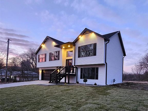 OPEN HOUSE SATURDAY JAN 18th ~ Significant Price Reduction on this New Construction Home ~ 4 bed & 3 bath ~ approx. 2,000 square feet ~ Oversized 2 car garage. Large lot just under half an acre. Freshly sodded & landscaped front yard. Gorgeous exterior combo of white vinyl siding with black highlights & black trimmed windows. Stamped concrete driveway & patio. Large covered front porch with black railing. Open Floor Plan. Custom window & lighting accent the bright entry foyer. LVP flooring. Kitchen featuring custom white cabinets, center island, solid counters. New Refrigerator, Range/Stove, Dishwasher & Built in Microwave included. Vaulted ceilings. This home features a Living room AND a Family room. Primary Bedroom Suite with walk in closet and private 3/4 bath with double sink. Walk out lower level with full size look out windows. The builder is finishing up on the final items including smoothing and grading the back & side yards. 30 min to Scott AFB. 20 min to downtown STL.