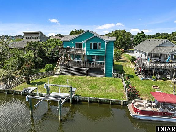 Canalfront living at its best! Welcome to 209 Eagle Drive, a beautifully maintained home in the gated community of Colington Harbour, offering 69 feet of canal frontage, a private boat dock, with boat lift (new bunks 2024), ELEVATOR, and exceptional water views. This 4-bedroom, 2.5-bath home features an additional bonus room space for guests or a home office. Lightly lived in as a primary residence, this property is in excellent condition and boasts numerous updates including new cabinet doors from Cozy Kitchens and quartz countertops, updated vanities, all new appliances (2023), fresh paint, and new fortified roof (2024), new HVAC 2022/2023 The top floor offers an open-concept living area with soaring ceilings, abundant windows for natural light, and access to a sun deck with built-in bench seating. The primary bedroom suite includes a private bath with jacuzzi tub, and there’s a convenient powder room for guests. The mid-level includes three additional bedrooms, including a room set up with two queen beds, a hall bath, newer washer/dryer, laundry sink, wood flooring in the hallway, and covered canal-side deck access. The elevator services all levels including the sunroom entry on the top floor. The ground level features dry entry from the carport, enclosed storage, fenced backyard, outdoor shower, and easy access to your private dock with new Trex decking (2024), perfect for boating, crabbing, paddle boarding, or simply relaxing by the water. Whether you're searching for primary residence, vacation home, or investment opportunity, 209 Eagle Drive offers it all - comfort, convenience, and waterfront charm in one of the Outer Banks’ most desirable communities.