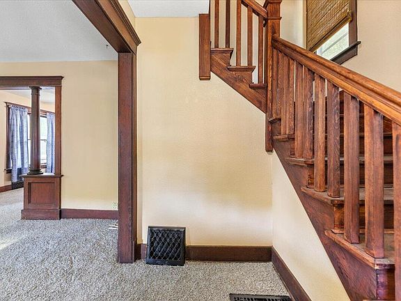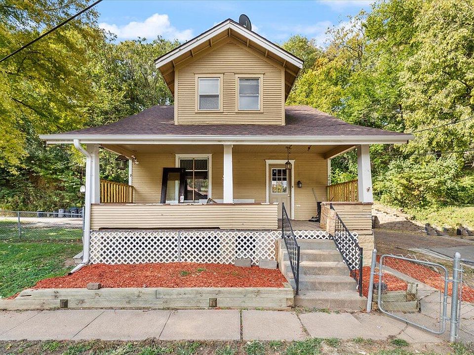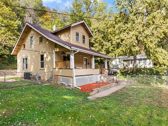 This stately turn of the century home is nestled in the bluffs at the top of a quiet dead end road with a large fenced yard and ample off street parking. The interior was recently refreshed with new floor coverings, fresh paint, and refinished original woodwork! You'll fall in love with the character this home offers, and can enjoy the peace from your full width covered front porch. The main level offers a large kitchen, formal dining room with large wood columns that separate it from the expansive living area. In the front entry foyer you'll find the recently refinished open stair case that leads you to the upper level featuring two generous bedrooms, a full bath, and a walk in attic storage area. The lower level is great storage and also has a second full bath and non-conforming room.