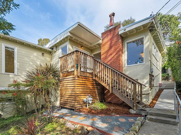 Tucked into the quiet North Berkeley Hills and offering a rare blend of peaceful living surrounded by nature, you are just minutes from Berkeley’s most beloved amenities. A majestic redwood in the front yard and a dramatic, historically significant rock outcrop in the backyard create a strong sense of place. Inside, west-facing windows fill the home with natural light, creating an immediate feeling of warmth and ease. The open-concept living space is anchored by a central bar that naturally becomes the heart of the home, ideal for casual mornings, entertaining, and connection.Flexible layout includes two well-sized bedrooms and an updated bathroom, a cozy den, and a primary bedroom with soaring ceilings and Bay views. A bonus studio on the lower level with separate entrance and full bathroom offers excellent versatility.Backyard is a true oasis with a patio off the kitchen, mature landscaping, and an elevated deck that feels like a treehouse in the treetops. Across the street is Terrace View Park and nearby trails offer easy access to outdoor recreation, while the Gourmet Ghetto, Monterey Market, and Berkeley Bowl are minutes away. Live a lifestyle defined by community and a deep connection to the natural beauty that makes Berkeley so special. OPEN HOUSES: Jan. 31 & Feb.1, 2-4pm.