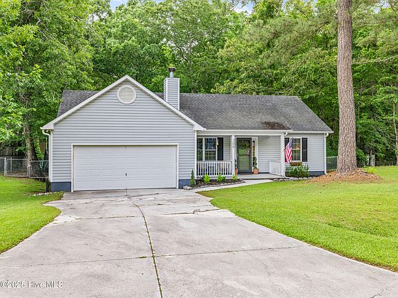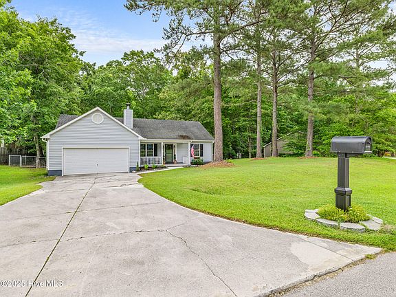 Welcome to your dream home in Jacksonville! This beautifully updated 3-bedroom, 2-bathroom residence is tucked away on a spacious, private wooded lot that backs up to mature trees, offering the perfect blend of seclusion and convenience. Just a short drive to Camp Lejeune and MCAS New River, it's ideally located for work, play, and peace of mind. Step inside and feel instantly at home with a light, neutral palette that radiates calm and comfort. The kitchen is a true standout, featuring beautiful painted cabinetry and thoughtful details. From the stylish finishes to the warm, cohesive décor, every inch of this home feels both inviting and on-trend. Enjoy your morning coffee or evening unwind on the large back deck, surrounded by the peaceful sounds of nature and views of mature trees. Whether you're a first-time buyer or simply looking to settle down in a serene setting, this home checks all the boxes. There's even permanent Christmas lights on the front of the home to make holiday decorating a breeze! Don't miss your chance to own this little slice of heaven in Jacksonville!