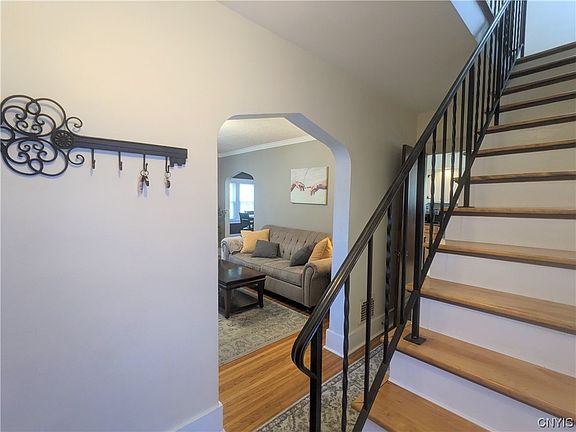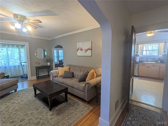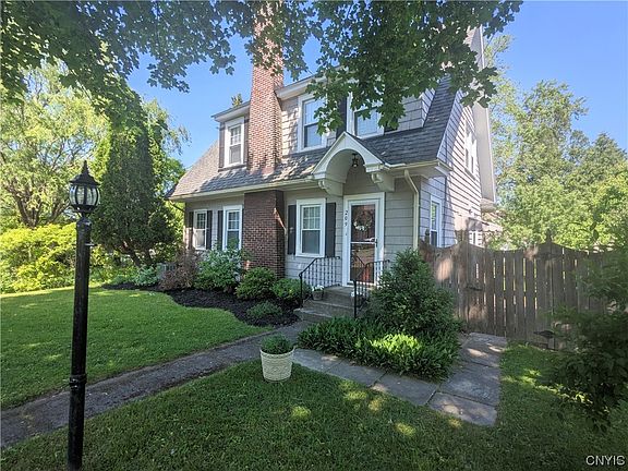 Welcome to this charming Westvale cape/colonial with so much to offer. You will love the natural woodwork and gleaming oak hardwoods throughout this beauty. First floor features a living room with a wood burning fireplace. There is an office or den off of the living room, that flows graciously into the formal dining room area. A large kitchen with eat-in area, has all stainless steel appliances included. Upstairs you will find three large bedrooms with the primary bedroom having a large walk-in closet. The walk-up attic provides more storage. The lower level has an area for the washer and dryer and opens up to the one car garage. The yard is beautifully landscaped, and has a private patio area the those lazy summer days. Solvay electric, keeps your utilities manageable all year long.