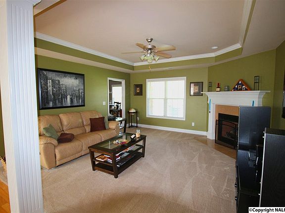 - Features: Ceiling Fan(s), Crown Molding, Carpet, Fireplace, Tray Ceiling(s)