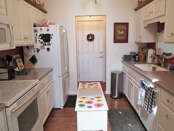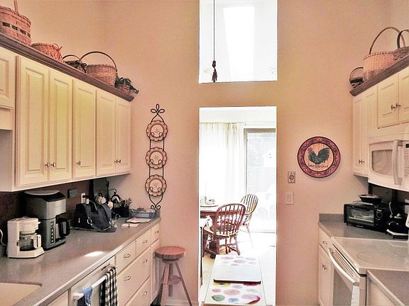Move in to fun times! Easy life awaits you in this immaculate 2 bedroom condo. It is totally updated with a gorgeous kitchen with beautiful white self-closing cabinets, Corian counter & sink, really nice appliances, hardwood floor & vaulted ceiling. The living room is "L" shaped to the dining area with a skylight, vaulted ceilings, beautiful stone (gas) fireplace, and patio doors to the private patio. The bedrooms are nicely sized, and there are updated baths & laundry room. There is also a nice computer/office area. The attached 2 car garage is very clean. This 1 story home is nicely decorated, move in ready & very clean. Call today for an appointment, then feel free to golf, relax, or travel- the maintenance is done for you!