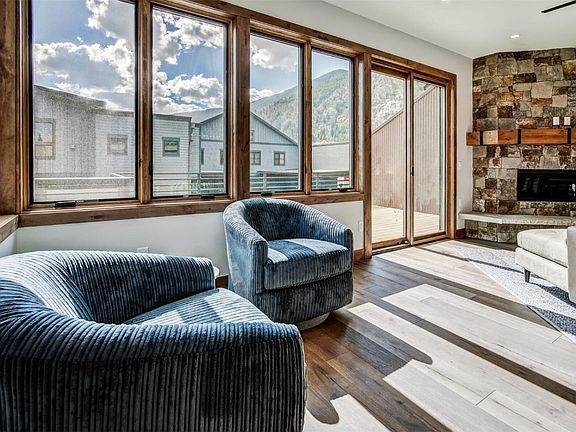 NEW CONSTRUCTION ONLY 1 LEFT! Beautiful Luxury Townhome located in the quaint mountain town of Frisco Colorado. INCREDIBLE VIEWS FROM ALL 5 DECKS! SOUTH FACING. 1/2 BLOCK OFF MAIN STREET. COMPLETE. PARTIALLY FURNISHED. Roof top deck with panoramic views of the continental divide, Ten Mile and Gore Range. Mountain modern finishes. Flex space can be used as a 4th bedroom or 2nd family room. Quartz counter tops, two fireplaces, wood floors throughout, designated structurally supportive hot tub deck, and main level deck for entertaining guests. Expansive open great room with stone surround gas fireplace, accent stone wall in entry, pantry, 1/2 bath, and main level primary bedroom . 2nd family room/flex space on entry level, with barn door for privacy. All bedrooms en-suite. 2nd Primary bedroom on its own private floor with metal gas fireplace. Beverage bar near hot tub deck. Main living room open with double level vaulted ceilings and open catwalk with exposed steel railings. Viking appliances. Oversized two car garage with an additional carport for two more cars. Epoxy floor in the garage. Power in garage ready for electric car charger. Panoramic views of all the Mountain Peaks. Mt. Royal, Peak One, Buffalo Mt, and Grays and Torreys 14ers. Centrally located in Summit County and surrounded by 5 world class ski areas. Free bus to ski in the winter, and bike and hike during the summer. Numerous hiking trails and bike paths right out your door. Walking distance to Frisco Marina on Lake Dillon for all your water actives, paddle boarding, kayaking, sailing, & fishing. Main Street 1 block away to enjoy all the restaurants, shops and festivals. Minutes from Ten Mile Creek, Walter Byron & Frisco Historic Park. HERs Home Energy Ratings, ZERH Zero Energy Ready Homes. 1 year builder's warranty. 1 1/2 hours to DIA Airport or Eagle Airport. LOW HOA DUES include exterior maintenance, siding, roof, snow plowing, shoveling to your door & landscape. Ready to move in!