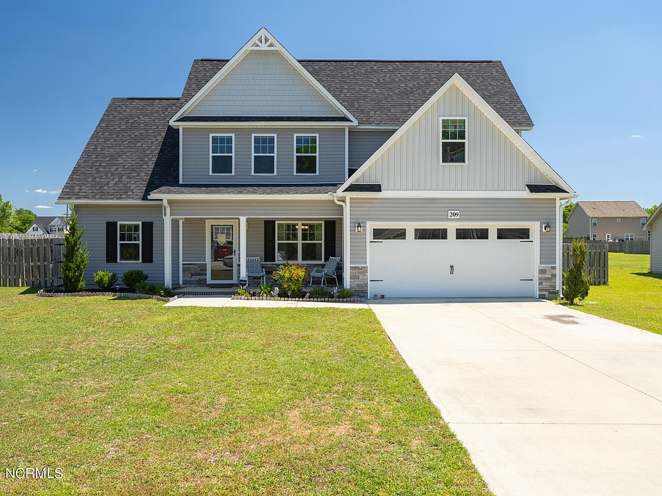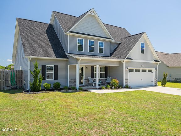 This one is a beauty! Built in 2019, this Cole floor plan with bonus room has it all! Open floor plan, bright and airy living area with fireplace, formal dining, and open kitchen with stainless steel appliances. The downstairs primary suite with attached full bath and walk-in shower, garden tub, double vanity, and LARGE walk-in closet is sure to please! Upstairs you have 2 additional bedrooms and a bonus room with storage closet. The large backyard with privacy fence and patio is perfect for entertaining or just enjoying the beautiful Eastern North Carolina days. Short drive to MCAS New River, Camp Lejeune, shopping and local beaches. Closing cost assistance available with preferred lender!