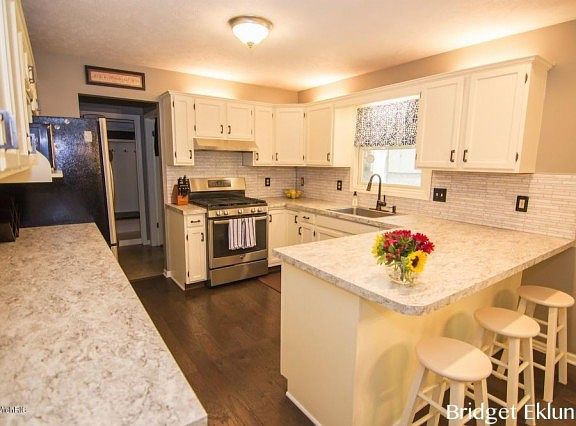 Don't miss this stunning Rockford home. The main level has been tastefully updated with hickory flooring, premium appliances, refinished cabinets, and beautiful light fixtures. The main level features laundry room, open kitchen/dining area, cozy living room with fireplace, and separate office/den. Upstairs there is a master suite with private bathroom, two bedrooms, and second full bathroom. The lower level features a non-conforming bedroom/workout area and family room. Step outside to your own private park (with Valley View Elementary behind the woods), or take a short walk to downtown Rockford from this turnkey home.