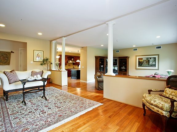 Newly renovated & expanded 4 BR bright Colonial with wonderful flow in ideal location near elementary school & commuter bus to train.Designer's own kitchen (2004)with highest quality cabinets,granite counters,stainless steel appliances,island with brkfast bar & eat-in area with french drs to spacious deck & flat yard.1st flr includes cherry floors & oversized family rm with high ceilings open to kitchen.Master BR w/soaring ceilings,wlk-in closets & luxurious bath.Dont't miss this great home!