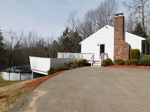 Lovely, Sunny & 2.5 acres of Privacy!! Cute ranch with open kitchen / dining area / living room with wood fireplace and beautiful large bay window area. Kitchen has large slider to rear deck that steps down to directly access the above-ground pool! Large walk-out basement could be easily finished! Recent roof (3 years), Recent furnace (2 years - still has 1 year left on 3yr warranty), security system! Whole house water filter and softener. Hardwood floors throughout. Convenient fenced-in dog area directly from basement walk-out door!