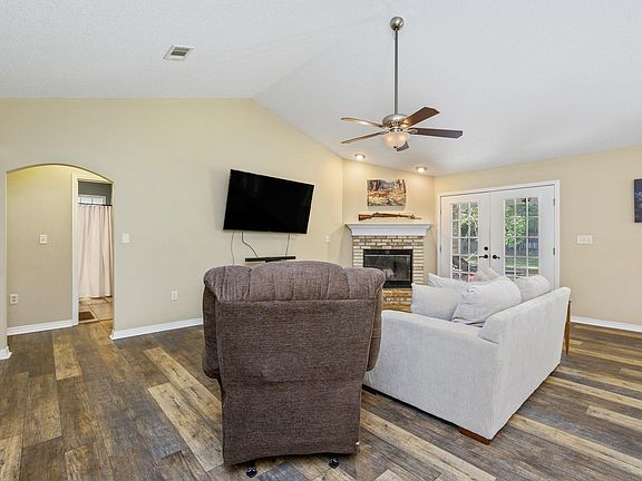 EVERYBODY'S ASKING! What's available South of I-10? This all-brick contemporary 4/2 boasts a welcoming front porch ready for those rocking chairs. Updated with luxury vinyl planked flooring in main living areas, carpet in bedrooms, kitchen has granite counters and stainless steel appliances. Screened in brick back patio adds a special touch for relaxing and entertaining, also provides access to the large level fenced back yard. This home has a three year old HVAC system both inside and out, roof is 6 yrs old. Home-happiness is just a call away