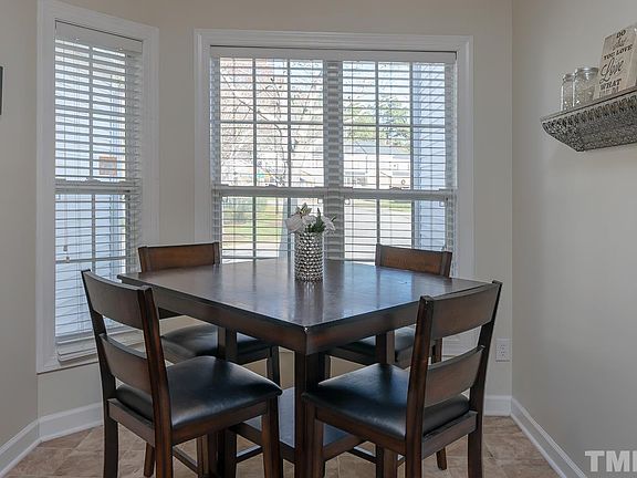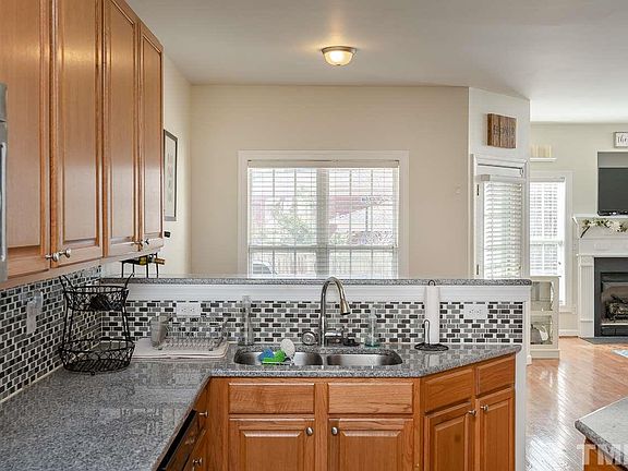 This property is a must see in the Grand Pointe community! Inside, enjoy the light filled kitchen featuring SS appliances, granite countertops, tile backsplash, & breakfast area; separate dining space and a large family area w/ fireplace; spacious master suite w/ walk-in closet & spa-like bath, & 2 additional bedrooms, w/ separate full bath. Both full baths have dual vanities. Outside, enjoy the covered porch, 1 car garage, and convenient access to Lake Benson Park & Lorraine's coffee shop. Welcome Home!