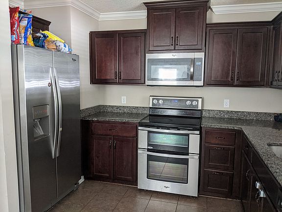 Beautiful 3 bdrm., 2.5 bath home features nice kitchen with granite countertops, SS double oven, refrigerator, above range microwave and dishwasher, pantry, separate dining area, living room, half bath with ceramic tile on throughout the downstairs. Upstairs has 3 bedrooms, large master with trey ceiling, TWO walk in closets, and master bath ,with double vanity and granite countertop , 2nd bedroom also has walk in closet. laundry room, and guest bath. Attached two car garage, privacy fenced yard, large 15' x 26' covered patio, faux wood blinds throughout home, ceiling fans in all bedrooms and living room. Quite neighborhood with 2 community pools and 2 community playgrounds! This home is a must see!!