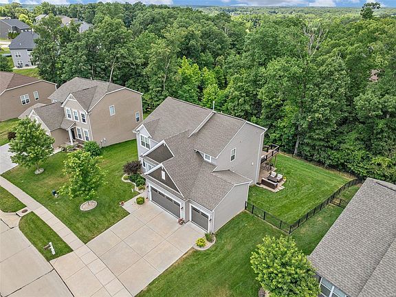 You will fall in love with this beautiful home w/over 3200 SQFT of living space. Main level features an open floor plan w/9’ ceilings,  Jeld-wen Low E windows allow natural light throughout & overlook the privacy the backyard offers, flex room/office, gas fireplace, waterproof laminate floors & recessed can lighting. Kitchen boasts 42' cabinets,granite counter tops,white subway tile backsplash, center island, SS appliances & 2 pantries/coat closet. 2nd floor offers a primary bedroom suite w/ coffered ceiling, spa like bath with double vanity, soaking tub, separate shower & large walk-in closet. 3 additional bedrooms, hall bath and 2nd floor laundry. The finished walkout lower level features a family/rec area w/kitchenette, a full bath & storage areas. The tree lined backyard offers a maintenance-free composite deck, large stamped concrete patio, irrigation system & full aluminum fence. Located minutes from shopping, dining, schools, parks, Busch Wildlife & easy access to Hwys 364 & 40. Additional Rooms: Mud Room