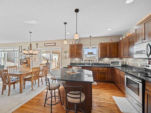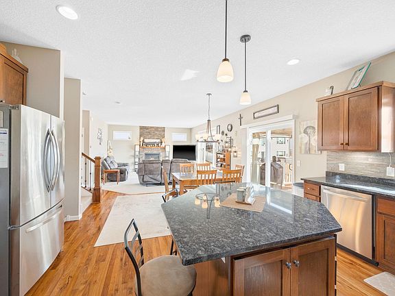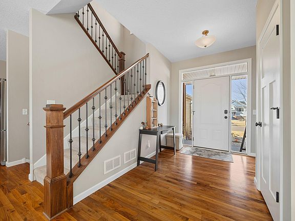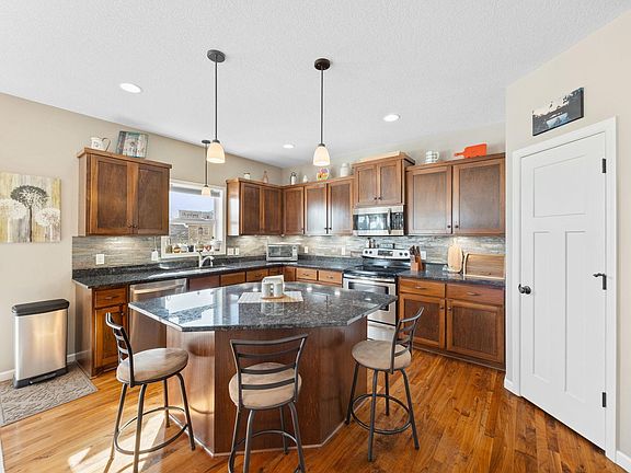 Beautiful 4 bedroom 4 bathroom home with walkout recently finished lower level! You'll appreciate the open concept kitchen/dining/living rooms with hardwood flooring opening to new composite deck! Gorgeous southern exposure & great windows. Kitchen features granite, walk-in pantry, center island & stainless appliances. 3 generous bedrooms with walk-in closets plus laundry room on upper level. Private primary suite boasts coffered ceilings, French doors, tiled walk-in shower with double shower valves & heads, separate vanities. Lower level features walkout to patio, generous family room, 4th bedroom & 3/4 bathroom. Heated 3-car garage. Award winning Delano Schools. Close to park, trails, tennis courts, more. Move-in ready!
