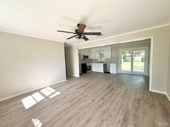 Welcome to your beautifully refreshed, move-in ready home! This spacious 4-bedroom, 2-bath residence features a thoughtfully designed split-bedroom floor plan that offers both privacy and comfort. The open-concept living, dining, and kitchen area is perfect for modern living and entertaining, boasting brand-new kitchen cabinets, countertops, and appliances. Enjoy fresh new flooring, paint, lighting, and fixtures throughout the home, creating a bright and inviting atmosphere. The primary suite is a true retreat with a completely updated ensuite bath. Additional upgrades include new exterior sliding doors and a high-efficiency tankless water heater. Don’t miss the chance to make this stunning, turnkey home yours! Refurbished Metal Roof with new screw replacements too. ALL SQ. FOOTAGE AND DIMENSIONS ARE APPROXIMATE AND IS THE BUYER'S RESPONSIBILITY TO VERIFY.