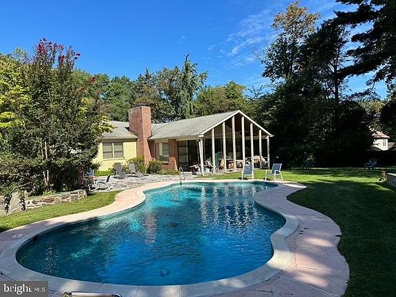 Welcome to 209 Gribbel, a custom-built stone ranch situated on a 3/4 acre beautifully landscaped lot. This unique home with mid-century vibes has great curb appeal and is located on a lovely, Privat cul-de-sac street with no through traffic. This special home built in 1953 features original architectural details typical to the mid-century era. The high ceiling and the numerous large windows create an airy and open atmosphere, enhancing the sense of space and light. Some of the special features are high ceiling with recessed lighting, large picture windows throughout, including a wall to wall and floor to ceiling main window on the back wall of the living room and dining room, stone wall fireplace, wood- pegged hardwood floors, and knotty pine paneled library/office with built-ins. The large eat-in kitchen has the original solid wood cabinets, granite counters, ceramic tile backsplash, ceramic tile floors and a large picture window over the sink. Two steps up from the living room is the bedroom wing, which includes 4 bedrooms and 2 updated bathrooms, good closet space and a laundry closet. The office/library is located to the right of the entrance and next to the kitchen. The enormous basement features two separate areas, a semi-finished room with brick wall fireplace, a wall of built-in shelving, powder room and a small bar. The other room which is the utilities/workshop area has a walk-in cedar closet and storage closet. Step outside into your own oasis, where an inviting inground pool, beautiful patios and grounds are a perfect space for relaxing and entertaining family and guests on a warm summer day. An over-sized 2 car garage with garage door openers, inside access and a long driveway allows for great parking and easy access to the house. A built-in whole house generator is an added bonus. This house is within walking distance to the center of Glenside affording the enjoyment of restaurants, bars, breweries as well as township library, playgrounds and Glenside Train Station.