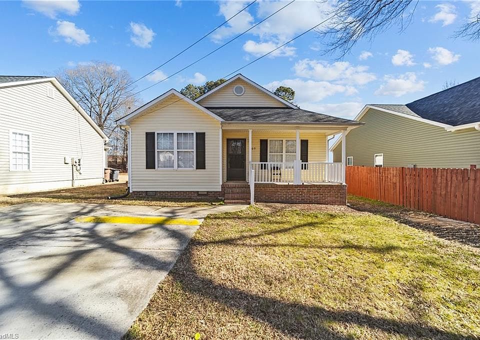 One-level in Greensboro. Recently refreshed with neutral paint and carpet. Large open dining room/living room layout. Primary bathroom w/ en suite. Spacious front porch. Flat backyard. Short drive to downtown Greensboro, Hwy 70/840.
