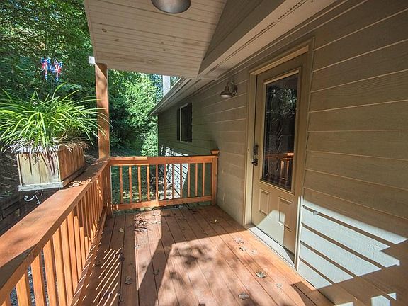 Incredibly quiet, private, and clean 3-bedroom 3 bath home. This home has open concept split bedroom floor plan featuring vaulted beam ceilings, hardwood floors, wood fireplace, with enough space for the whole family. Out the double doors is a huge covered deck to enjoy the Smokie Mountain weather. The kitchen is beautifully updated with top of the line appliances, solid maple cabinets with pull outs & island/breakfast bar, and plenty of storage. This home features 3 bedrooms all with their own bath. The large master has walk in closets, and a generous master bath. The second bedroom also has a walk-in closet and a private bath. The lower level bedroom shares a full bath, has a walk-in closet, and an outside entrance so guests come and go as they please. Also, on this level is a extra-large single car garage with plenty of space for a workshop and vehicles as well. There's paved road access to the driveway. Split driveway allows you to go one way to the garage level & the other to main level making it easier to bring in the groceries.