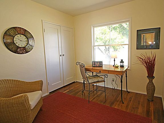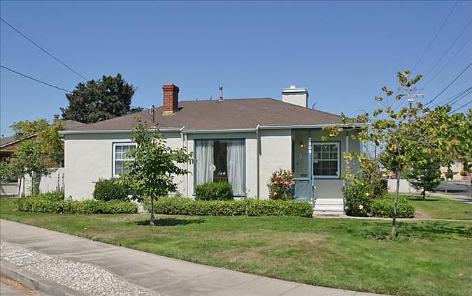 This charming Alameda bungalow is located on a large and sunny corner lot. The sun-filled living room features a large picture window, a cozy fireplace with a granite surround and gleaming hardwood floors. The dining area opens to the living room. The kitchen has ample storage and counter space and overlooks the backyard. The washer and dryer are conveniently located in the kitchen area. You will be pleased to find three generous bedrooms, all of them light and bright! A shared bath is located off the hallway. This home has been freshly painted inside, has many newer windows and boasts gleaming hardwood floors throughout! The fully fenced backyard is spacious with a large fruit tree, storage shed and easy access to the detached garage. The front yard has been nicely landscaped with various fruit trees and a lush lawn. What a great location with shops and cafes on nearby Webster Street. The Alameda Ferry and the Webster Tube are also just minutes away.