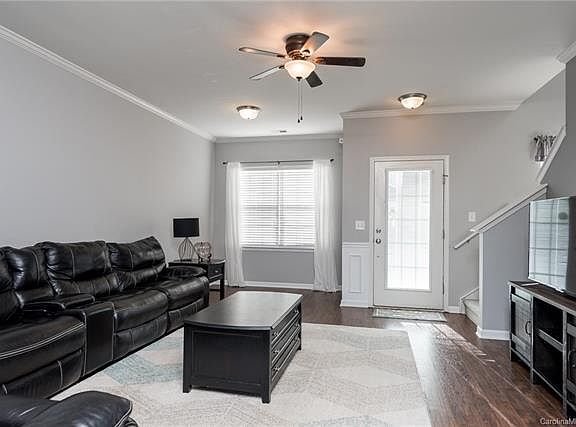 Beautifully maintained end unit townhome in desirable Settlers Landing. Bright, open floor plan with spacious great room, inviting kitchen featuring stainless steel appliances, granite, endless counter space, plenty of room for seating at the bar, two pantries, space for large dining table. Gorgeous new laminate wood flooring, current paint colors, picture molding and crown molding. Upstairs you'll find sizeable master suite and 2 additional large bedrooms each with vaulted ceiling. Enjoy outdoor living on your peaceful back patio with privacy fencing on sides, concrete pad easily accommodates table for 4 as well as grill, beyond the patio is an extended paver patio leading out to large open field. Great location just minutes to Concord Mills, 485, restaurants, speedway, and so much more. $1000 toward closing cost with preferred lender.