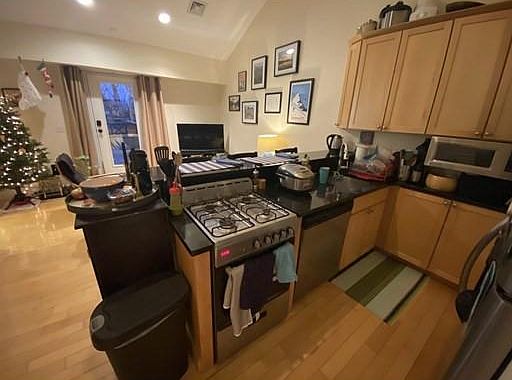 2-bed + 25 FOOT CEILINGS! 1-bath condo in a 3-unit building located near Central Square, Cambridge!! PRIVATE ROOF DECK! 1 Off-Street Parking Space Included! CENTRAL A/C Laundry IN-UNIT! Features: Hard Wood floors, Vaulted Ceiling- 2 Story living room, Open Floor plan, Granite Counters, with island peninsula for bar seating, Gas stove, Dishwasher and Disposal. Gas Heat. FREE washer/dryer (free for all tenants to operate). Designated Storage, 80 Sq-Ft of Storage in Basement.