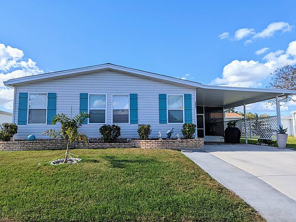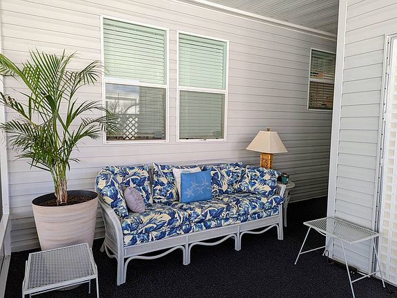 You'll find a rare and unique floor plan in these 2 generous bedrooms SPLIT... EACH with its OWN en suite AND walk-in closets! This unfurnished 1568 SF Jacobson home features a large bright living room and dining area that highlights stunning laminate floors throughout the home with tiled baths. You'll love the eat-in kitchen with beautiful granite countertops atop pristine white cabinets with pull-out shelves, pantry, as well as updated appliances and range hood! The washer and dryer are conveniently located off the kitchen. Then sliding glass doors take you to a wonderful air-conditioned sunroom with side-to-side windows, plus a separate entrance to outdoor living... a screened-in lanai leading back to the carport. (parking for 3 cars). Lots of terrific extras modernize this home, such as UPDATED front door, screen door, shutters, interior doors, light fixtures fans, mirrors in baths, and wooden blinds. Located in a premier 55+ active community that is pet friendly! Amenities include Olympic size, swimming pool, large sundeck, outdoor resident kitchen, fire pit, a resort-style clubhouse with a state-of-the-art workout center. Grand ballroom hosts many events and activities, billiard room, craft room, library, pickleball, tennis, clubs to join and so much more. Lot rent is $878 plus annual taxes, includes all the wonderful amenities plus lawn mowing and trimming as well as INTERNET AND CABLE PLUS 2 HD BOXES! This very pretty home will not last. All listing information is deemed reliable but not guaranteed and should be independently verified through personal inspection by appropriate professionals. Integrity Mobile Home Sales cannot guarantee or warrant the accuracy of this information, measurements, or condition of any property. Measurements are approximate. Lot rent is subject to change