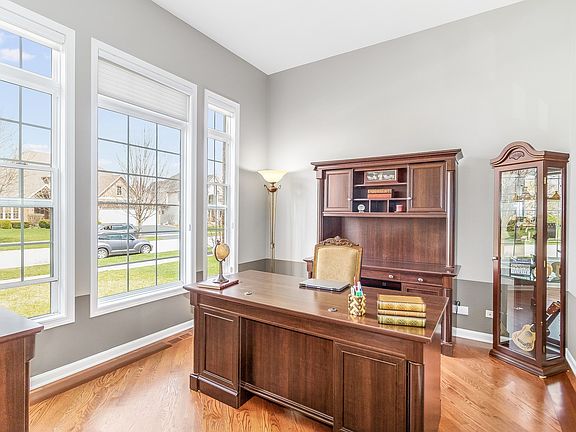 You won't believe how much space this beautiful Gates Creek West home and 3 CAR GARAGE offer! Main level features OPEN LAYOUT and hardwoord floors throughout. 1st floor office is set back for privacy. 2 STORY LIVING ROOM with stone fireplace is perfect for entertaining. Kitchen includes SS appliances, double oven, island, and walk-in pantry...no storage issues here! Not a fan of stairs? Then you'll love the 1st FLOOR MASTER bedroom with walk-in closet and en suite bath with double sinks and soaking tub. 3 big bedrooms on 2nd floor with overhead lighting in each. Open basement with bath rough-in is just waiting for your finishing touches. Enjoy summer entertaining on your brick patio with built-in gas grill and beverage fridge. Built-in fire pit is perfect for those cool Chicago evenings. Don't miss seeing all this home offers!