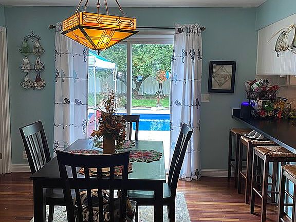 Hardwood and tile throughout entire home. All rooms newly painted, new liner in pool placed this summer. There is a second den for multiple uses: office, kids playroom, man cave, the uses are endless.