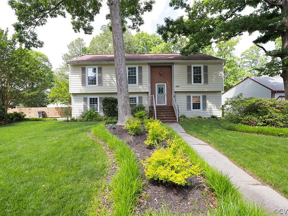 Located in the heart of Colonial Heights, this charming split-level home offers convenient access to everything the area has to offer, while boasting a beautiful, meticulously maintained lawn. As you approach the home, you're greeted by its inviting exterior and immaculate landscaping, setting the stage for the beauty within. The main level of the home features hardwood floors throughout, adding warmth and character to the living space. The master bedroom is a tranquil retreat, complete with a walk-out screened porch featuring composite decking and providing a perfect spot to enjoy the serene backyard. The kitchen is spacious and open, seamlessly flowing into the dining and living areas, making it ideal for both everyday living and entertaining. Upstairs, two large bedrooms offer comfort and convenience, each equipped with ceiling fans to keep the air circulating. Downstairs, a large family room awaits, offering ample space for relaxation and gatherings. Built-in shelving units and a gas fireplace with a brick surround add both functionality and charm to the space. An additional bedroom and a spacious utility room complete the lower level, providing versatility and practicality for modern living. Overall, this lovely home offers a perfect combination of comfort, convenience, and charm, making it an ideal place to call home in Colonial Heights.