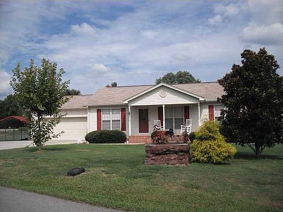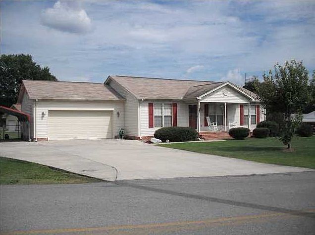 Very Charming all one level home~ large 1/2 acre lot~Back yard is fenced with a fenced dog run area~Enjoy your morning coffee on your covered front or back porch. Low maintenance vinyl siding~ Private master bedroom with trey ceiling and walk-in closet. Sunny living room with vaulted ceilings, Gas log fireplace with marble tile and TV storage~hardwood flooring~Seperate laundry room~Newer large Tran A/C unit to keep the whole house cool all summer long~ 2 car garage with work space~Additional parking in a carport on the side of the home, Extra large driveway for additional parking~ Mature trees in the front of the home, this home is a must see.All kitchen appliances stay including refrigerator. Very private lot~This home is a must see today!