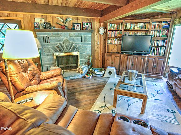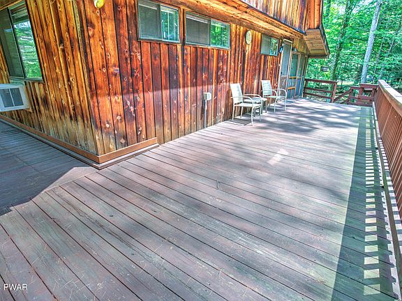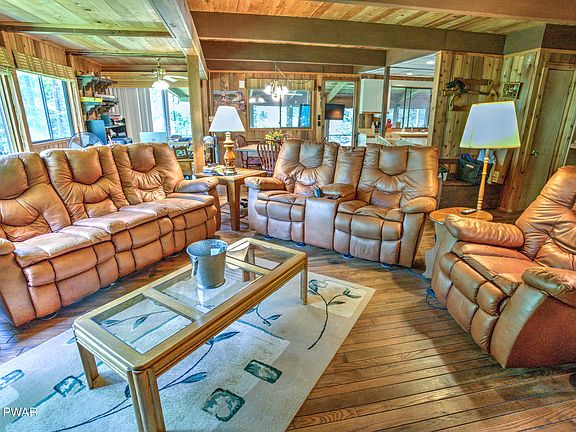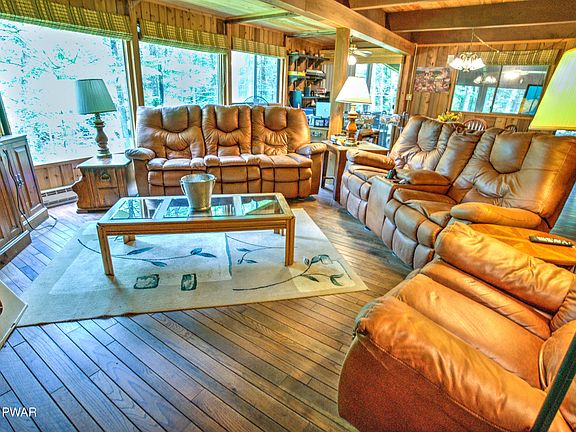 Tanglewood Lakes Dutch Barn Style Cedar Home! This property features 4 bedrooms, 2 bathrooms, w/a master suite conveniently located on the 1st floor. Enjoy the open concept living/dining & kitchen area w/cedar T&G walls & ceilings, complementing the wood oak floors. Stay cozy by the stone wood-burning fireplace in the living area. Upstairs, you'll find 3 more bedrooms & a full bath. The walkout unfinished lower level offers endless possibilities for expansion. What sets this home apart is its unique location, as the property backs up to open space, granting deeded lake frontage to beautiful Lake Tanglwood. Imagine having direct access to the lake by merely strolling through your backyard. Paved driveway & large deck. Furniture included!, Beds Description: Primary1st, Baths: 1 Bath Level 1, Baths: 1 Bath Level 2, Eating Area: Dining Area, Beds Description: 2+BED 2nd