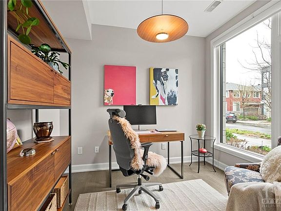 Welcome to this upscale and well-appointed 2-bedroom plus den townhome in Greystone village, a riverfront community in the heart of the city. This home has been meticulously maintained & thoughtfully designed with luxury finishes, from hardwood floors to quartz countertops throughout. The kitchen is a chef's dream with high-end cabinets, spacious island, & professional appliances, including a wall oven for culinary perfection. The living area is complete with 2 terraces allowing you to bring nature indoors while expanding your entertainment space. Upstairs, you will find two spacious bedrms with ensuite bathrms & convenient laundry room. The large roof top patio is a highlight to enjoy. The garage has parking for 1 vehicle, driveway for another, & a separate entrance to the garage for easy access to store recreational equipment. Come experience a tranquil community along the Rideau River, where city living meets an active lifestyle with convenient amenities just steps away. 24hr Irrev.
