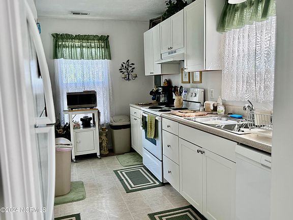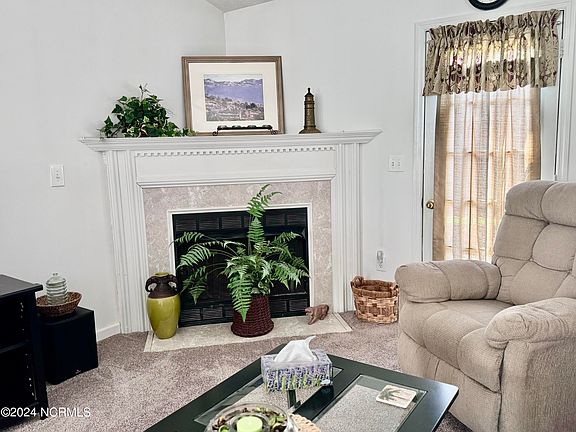 Cute cottage style townhouse in excellent condition is ready for investor or a primary owner. Kitchen is fully equipped and includes the refrigerator. Principal bedroom is at the rear of the unit and has a large walk in closet that accommodate the laundry area. Second bedroom has access to hall full bath. Large great room provides designated dining area and living room with gas log fireplace. Back door leads to a privacy fenced back patio and small yard. This is an end unit with access to side yard as well. Lawn maintenance (except court yard) provided by the HOA. Convenient to MCAS Cherry Point and a short drive to NC beaches. Home is tenant occupied with a lease that ends May 31 and month-to-month after that.
